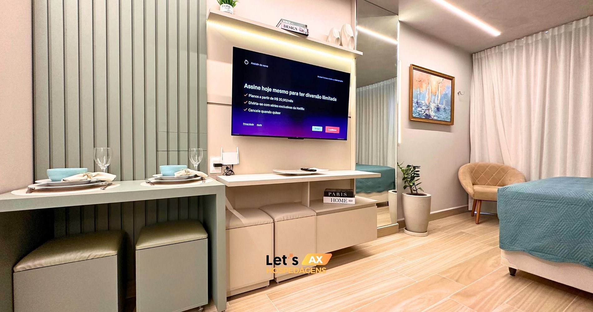 - Este Studio oferece: 01 Cama Queen, 01 Sofa cama e decoração sofisticada.