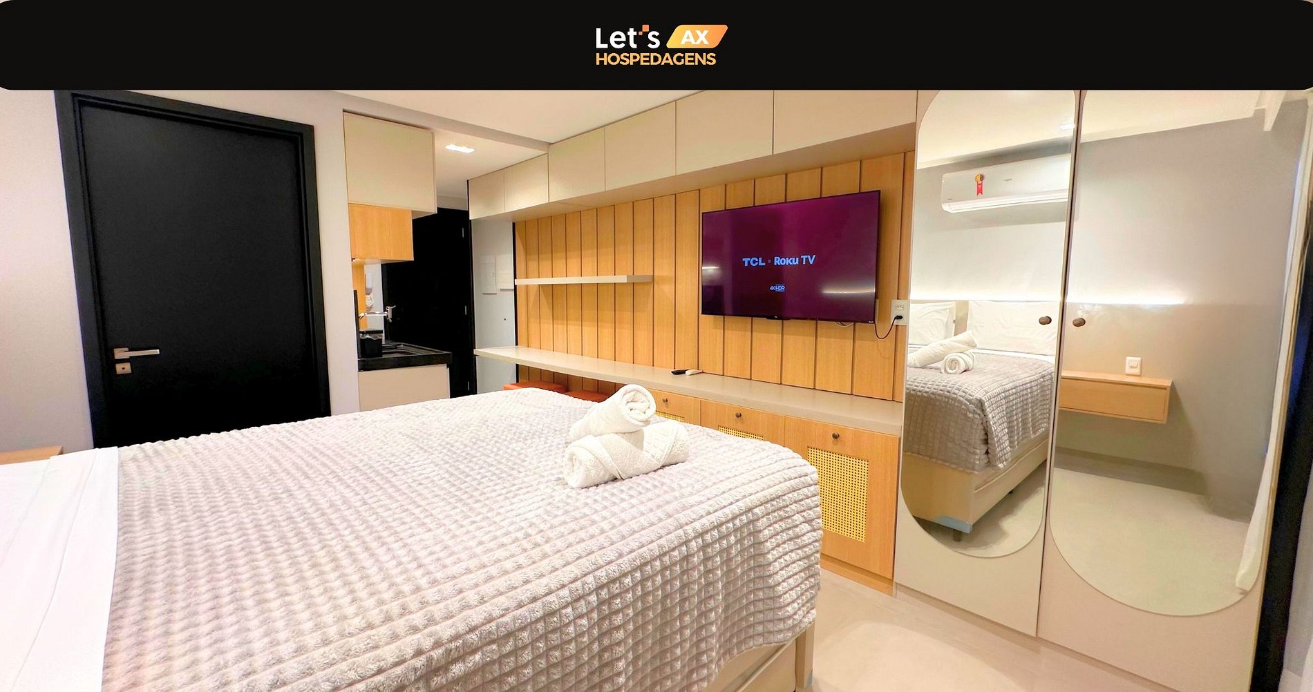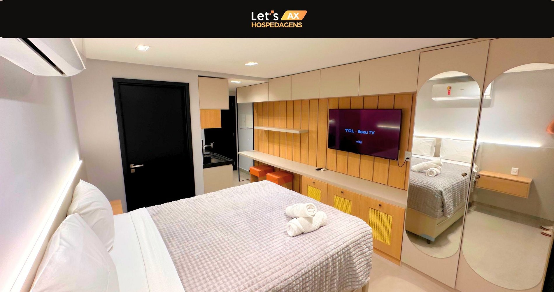 - Studio disponibilizando: Uma cama de casal e duas camas auxiliar solteiro, lençóis premium, coberta, toalhas e travesseiros.