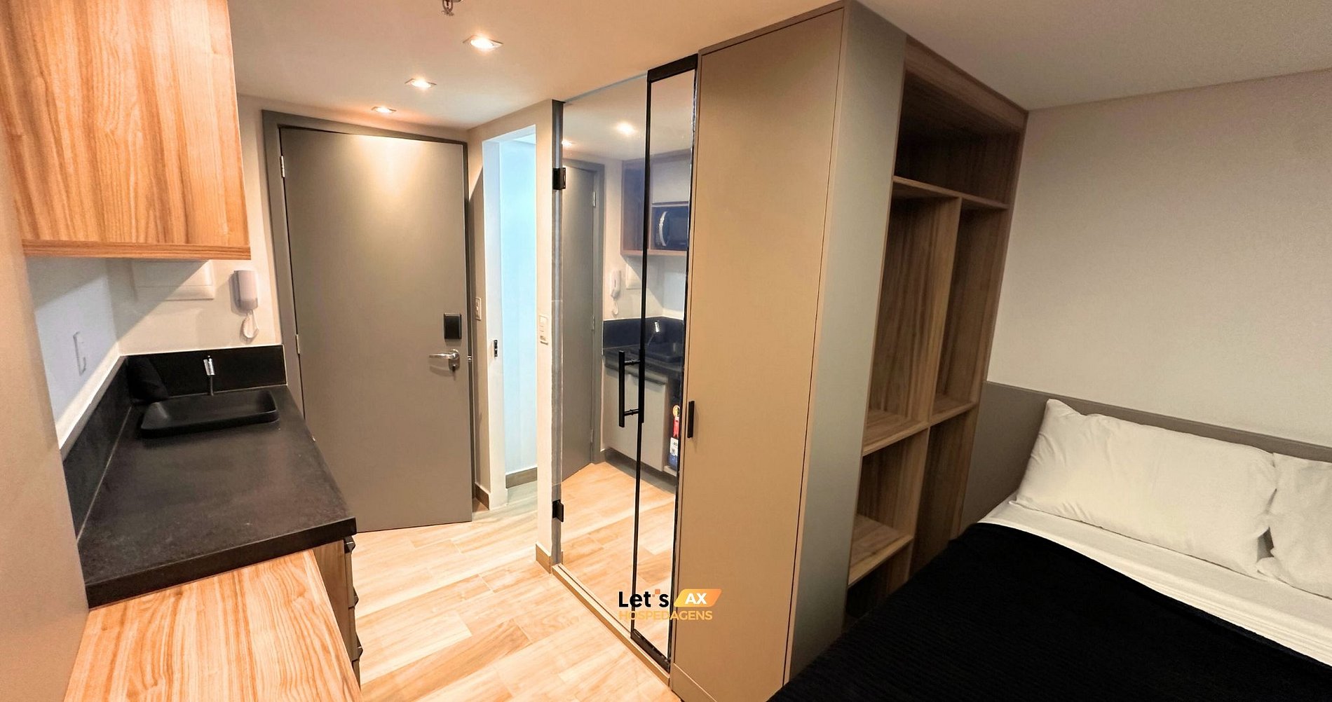 Desfrute de um studio elegante e completo, ideal para quem busca conforto, praticidade e um toque de sofisticação.