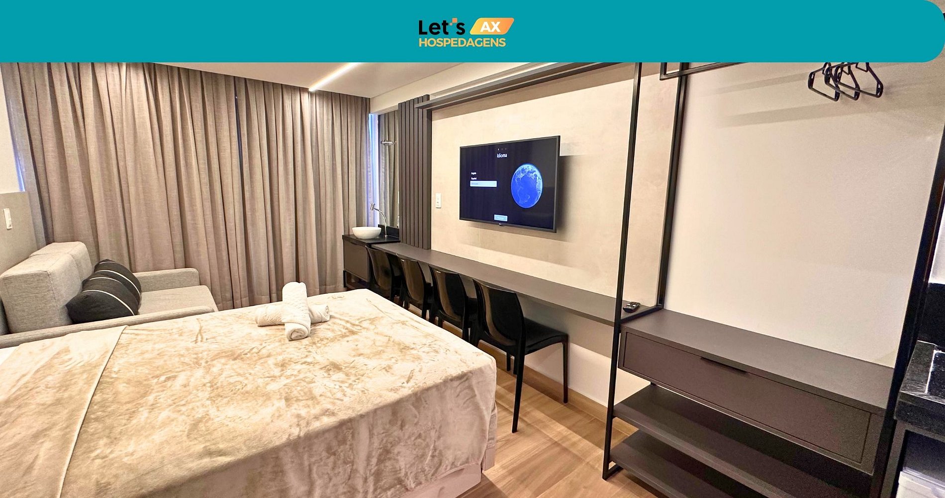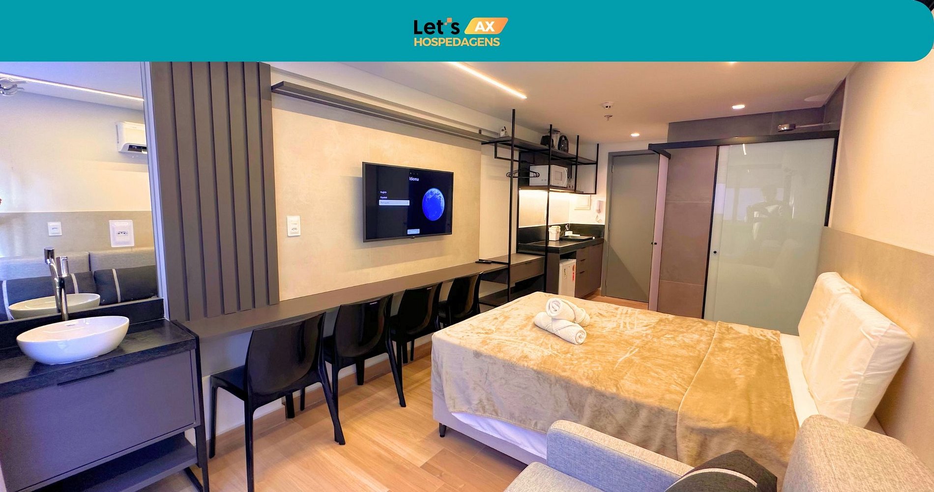 Desfrute de um studio elegante e completo, ideal para quem busca conforto, praticidade e um toque de sofisticação.