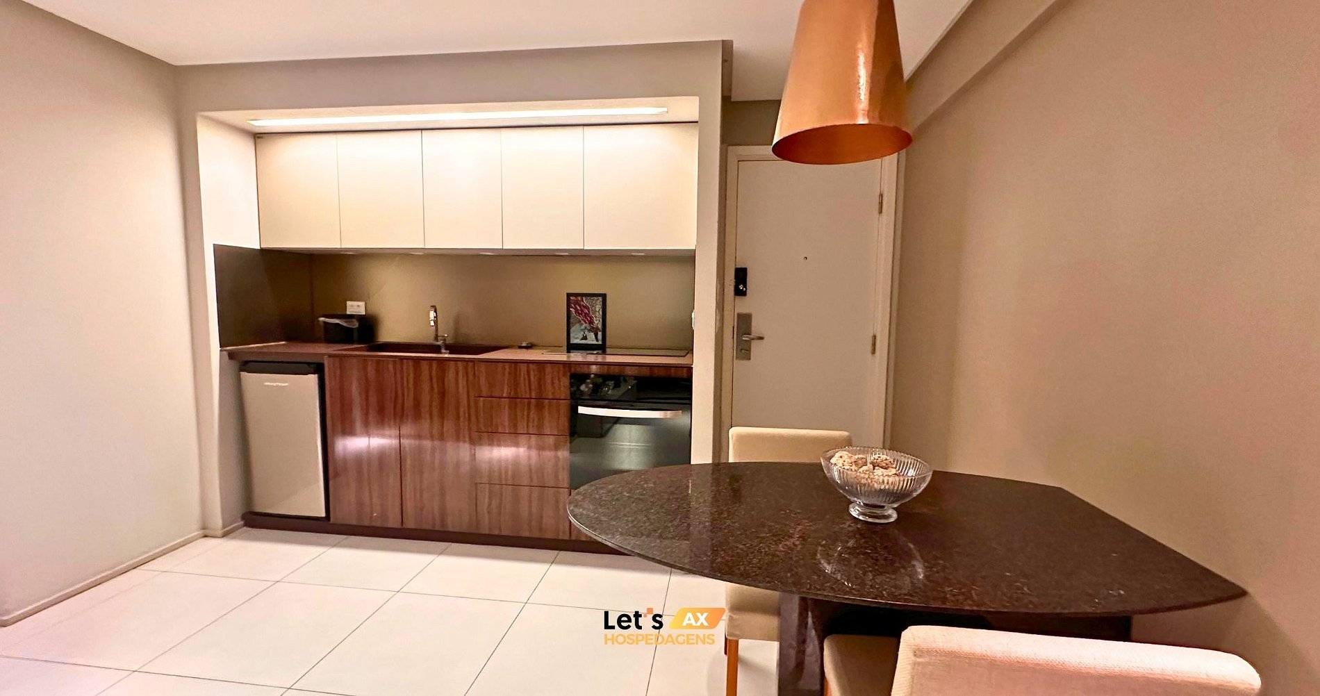 Os hóspedes podem desfrutar gratuitamente de acesso à piscina, ao salão de jogos e também têm a conveniência de contar com lojas e restaurantes localizados no andar térreo. Isso proporciona uma experiência mais completa e agradável durante a estadia, permitindo aos hóspedes aproveitar diversas opções de lazer e comodidades sem a necessidade de sair do local. A disponibilidade dessas instalações e serviços contribui para tornar a experiência dos hóspedes mais agradável e conveniente, proporcionando momentos de diversão e relaxamento durante sua estada no estabelecimento.