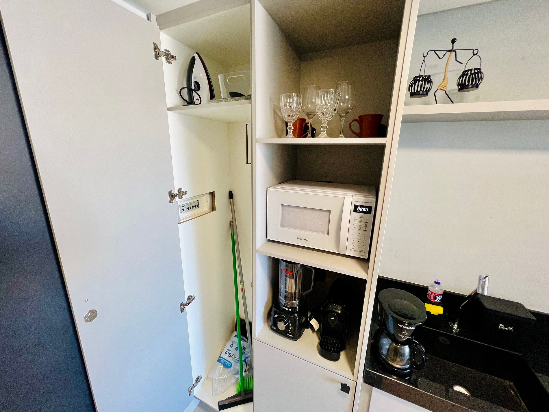 - Espaço projetado disponibilizando: Pratos, copos, talheres, microondas, sanduicheira e cafeteira.