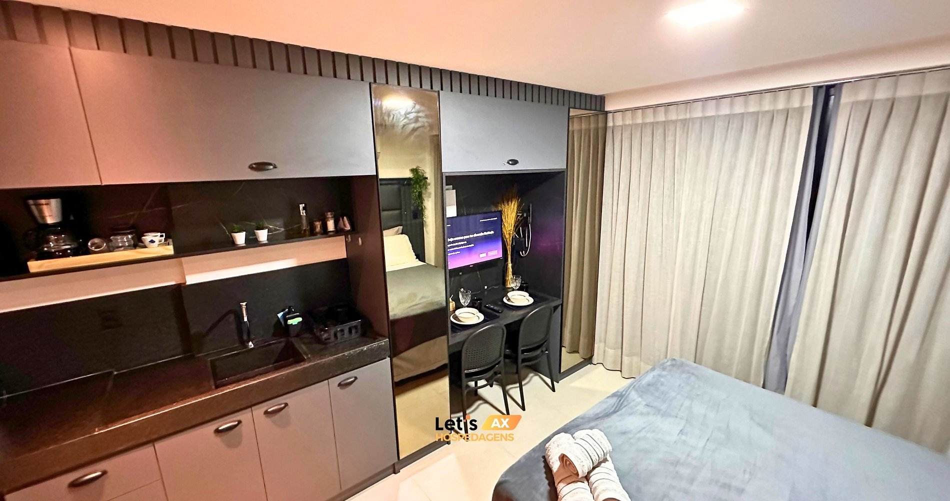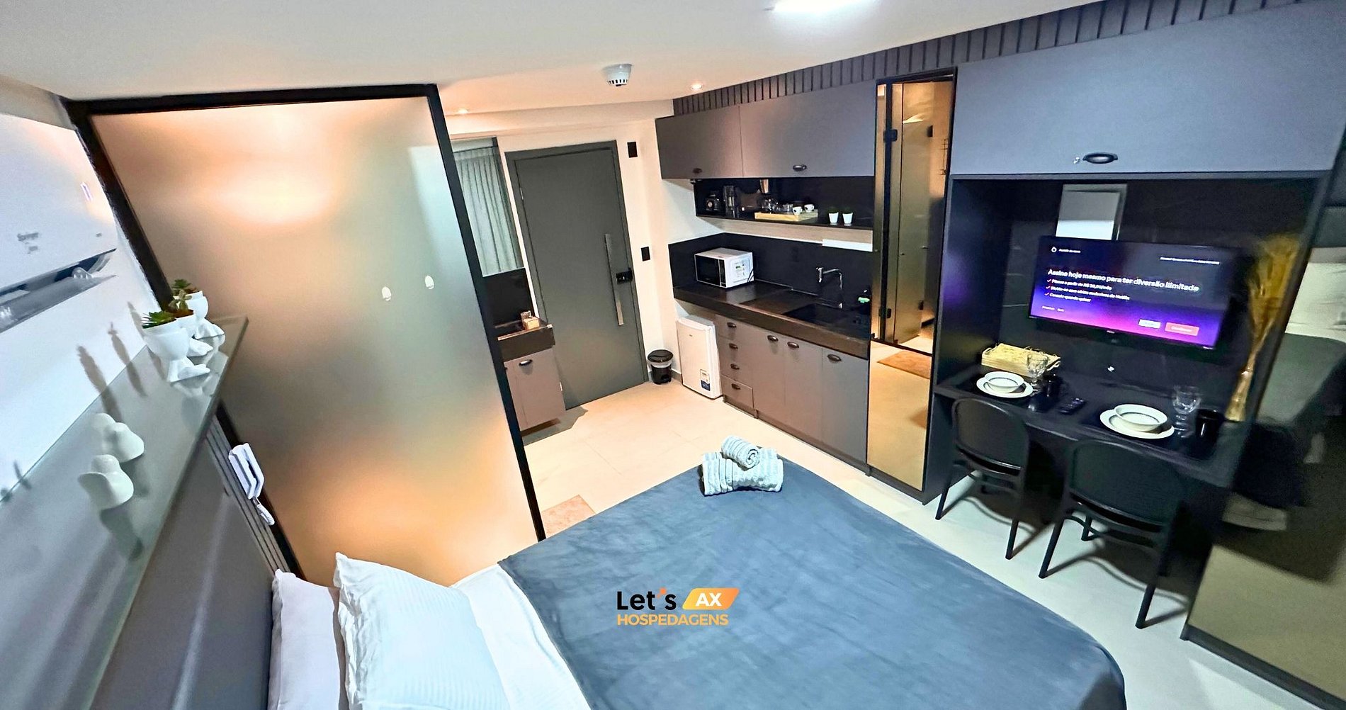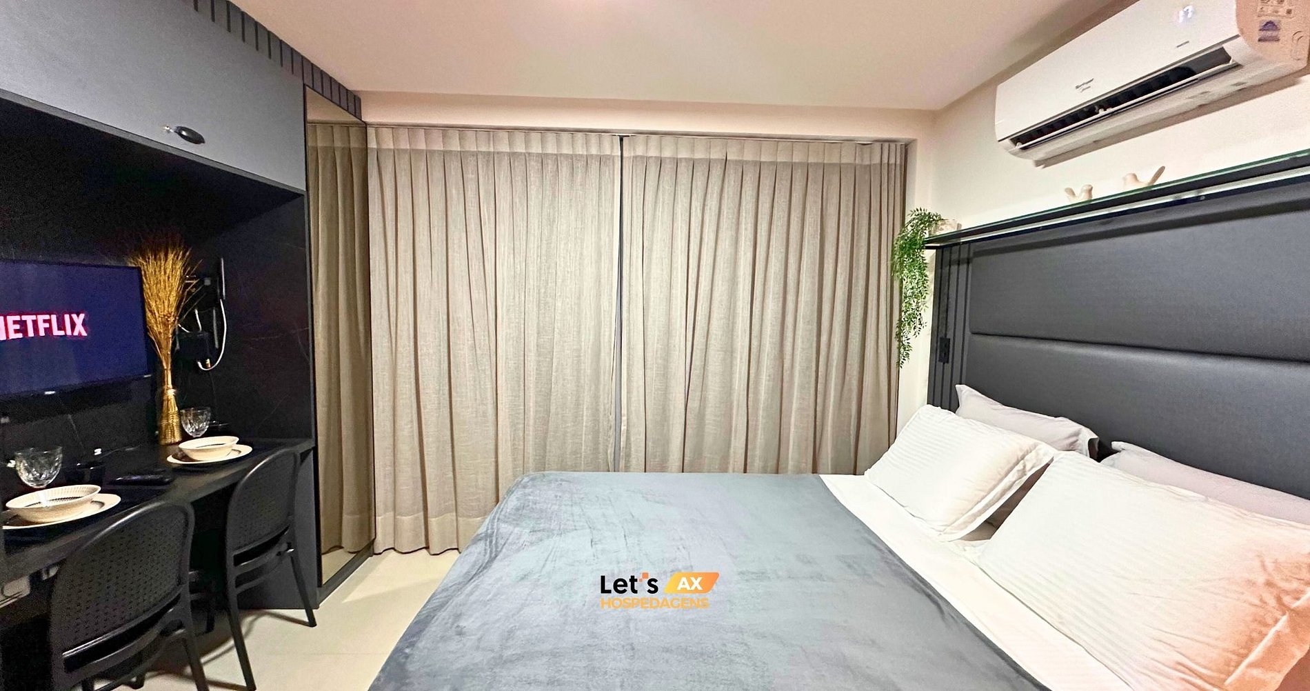 Relaxe neste espaço calmo e cheio de estilo, um apto Studio de 25m equipado e todo decorado. Fica super bem localizado na praia do Bessa e a 2 min a pé da areia da praia. Está equipado com tv smart, wi-fi gratuito, ar condicionado, frigobar, cafeteira, sanduicheira e alguns utensílios de cozinha.