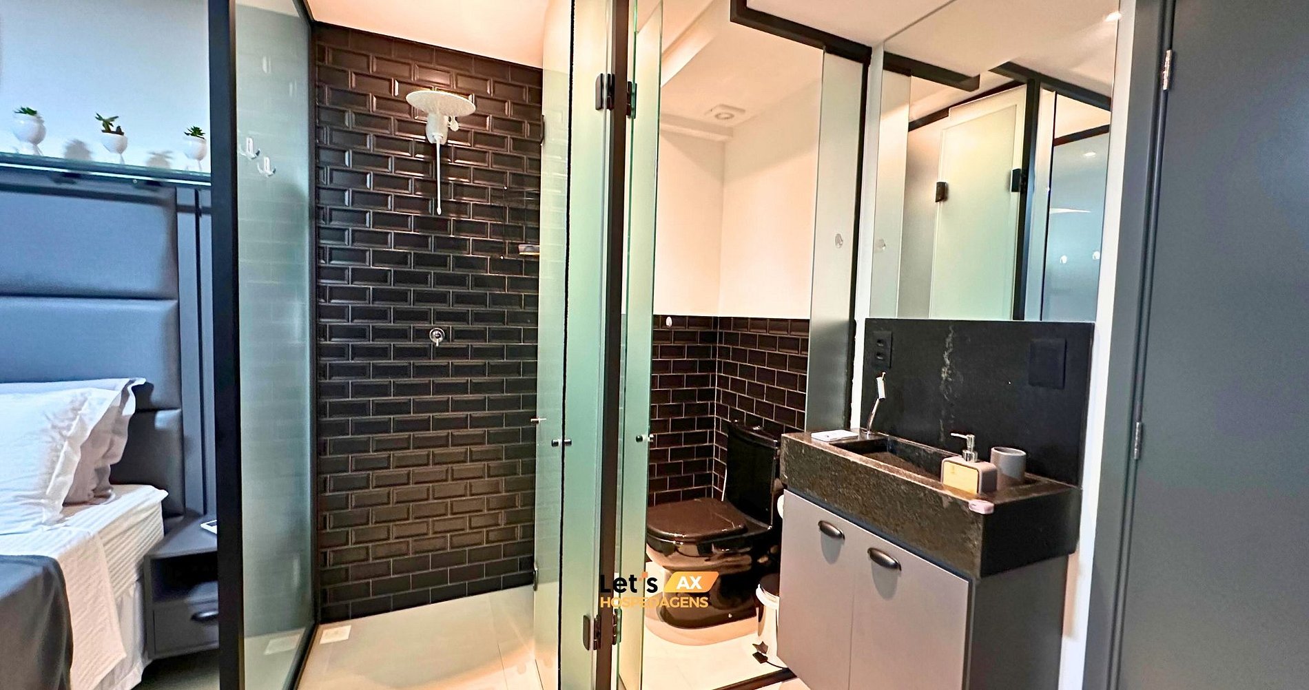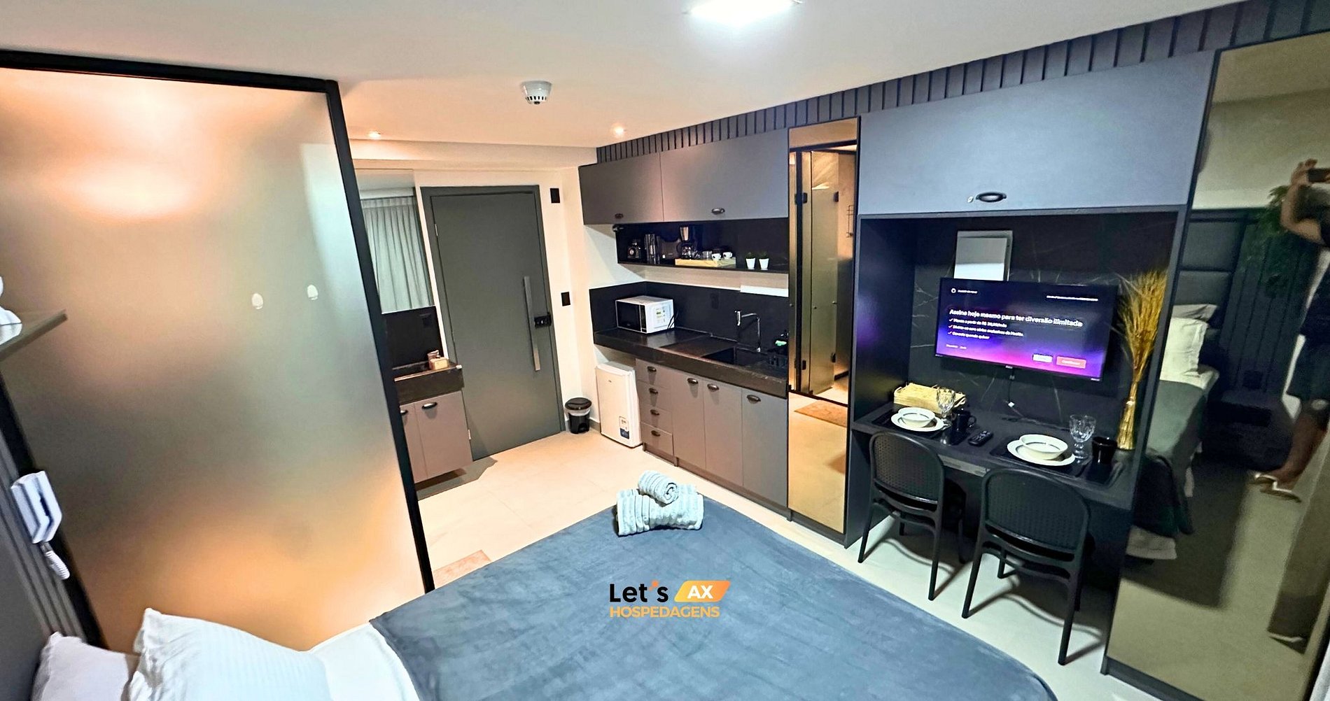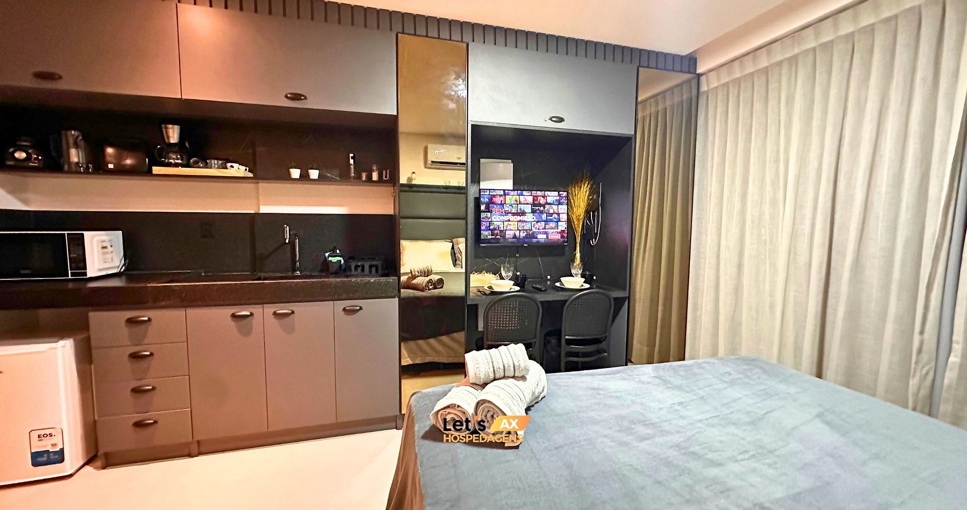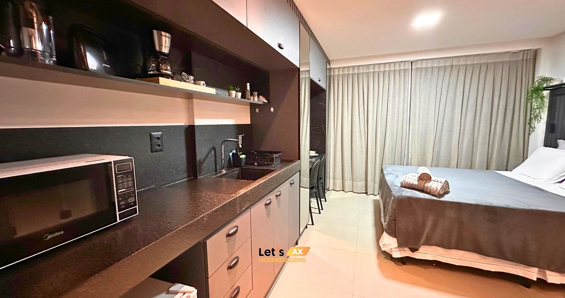 Relaxe neste espaço calmo e cheio de estilo, um apto Studio de 25m equipado e todo decorado. Fica super bem localizado na praia do Bessa e a 2 min a pé da areia da praia. Está equipado com tv smart, wi-fi gratuito, ar condicionado, frigobar, cafeteira, sanduicheira e alguns utensílios de cozinha.