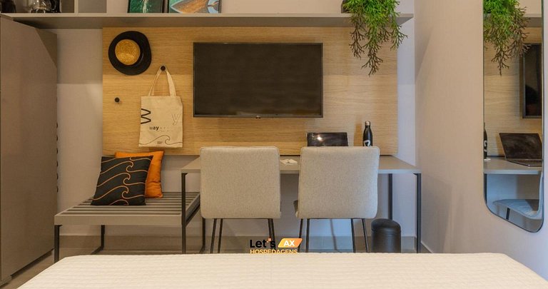 Relaxe neste espaço calmo e cheio de estilo, um apto Studio de 25m equipado e todo decorado. Fica super bem localizado na praia do Bessa e a 2 min a pé da areia da praia. Está equipado com tv smart, wi-fi gratuito, ar condicionado, frigobar, cafeteira, sanduicheira e alguns utensílios de cozinha. A área de lazer está localizada na cobertura e dispõe de piscina e uma vista belíssima. Possui garagem coberta rotativa no interior do prédio.