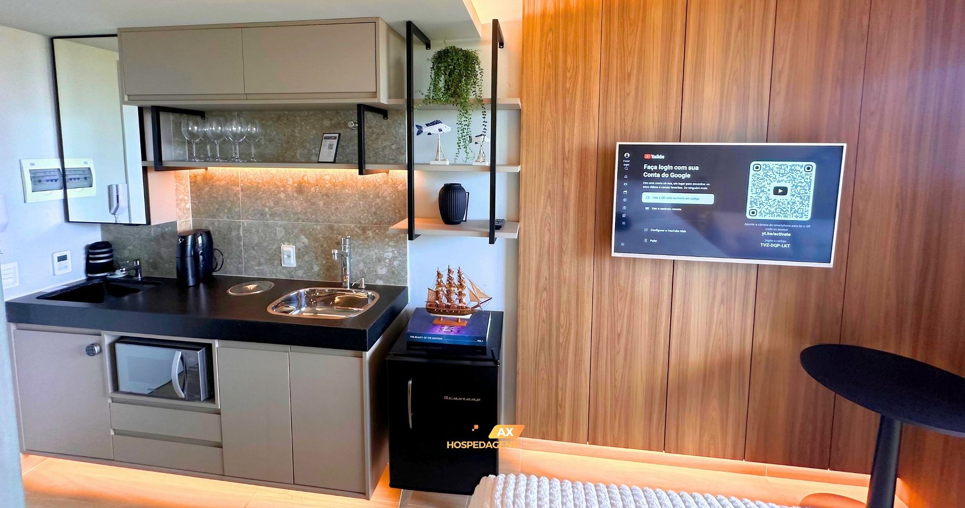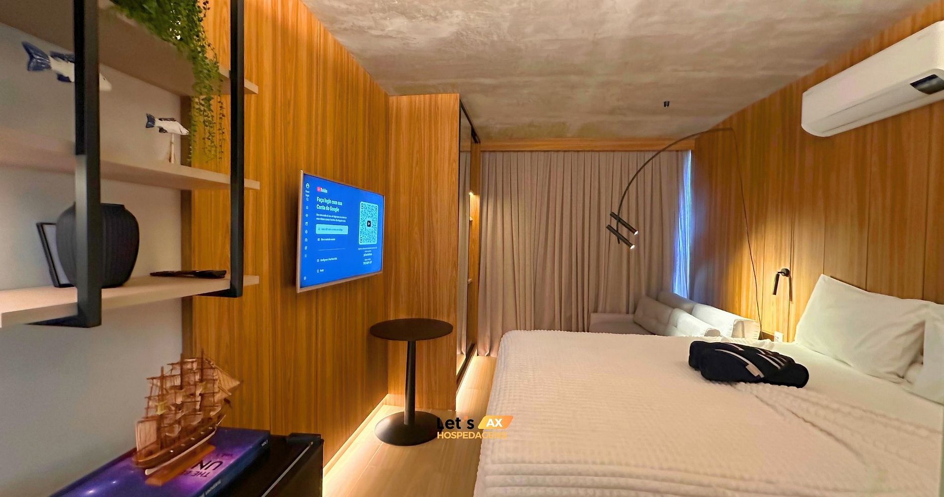- Este Studio oferece: 01 Cama Queen, 01 Sofa cama e decoração sofisticada e vista para o mar.