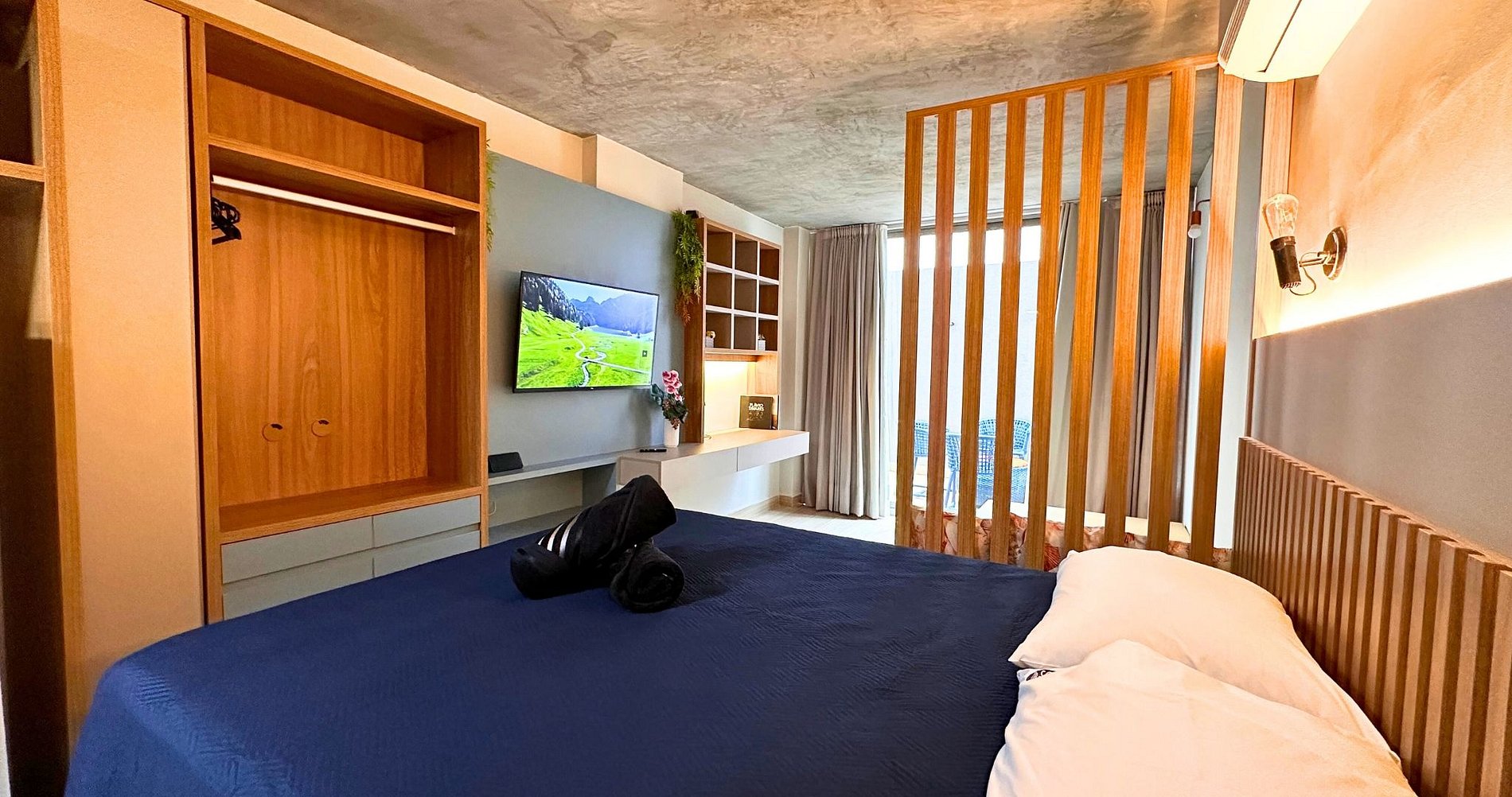 - Studio disponibilizando: Duas camas de casal, lençóis premium, coberta, toalhas e travesseiros.