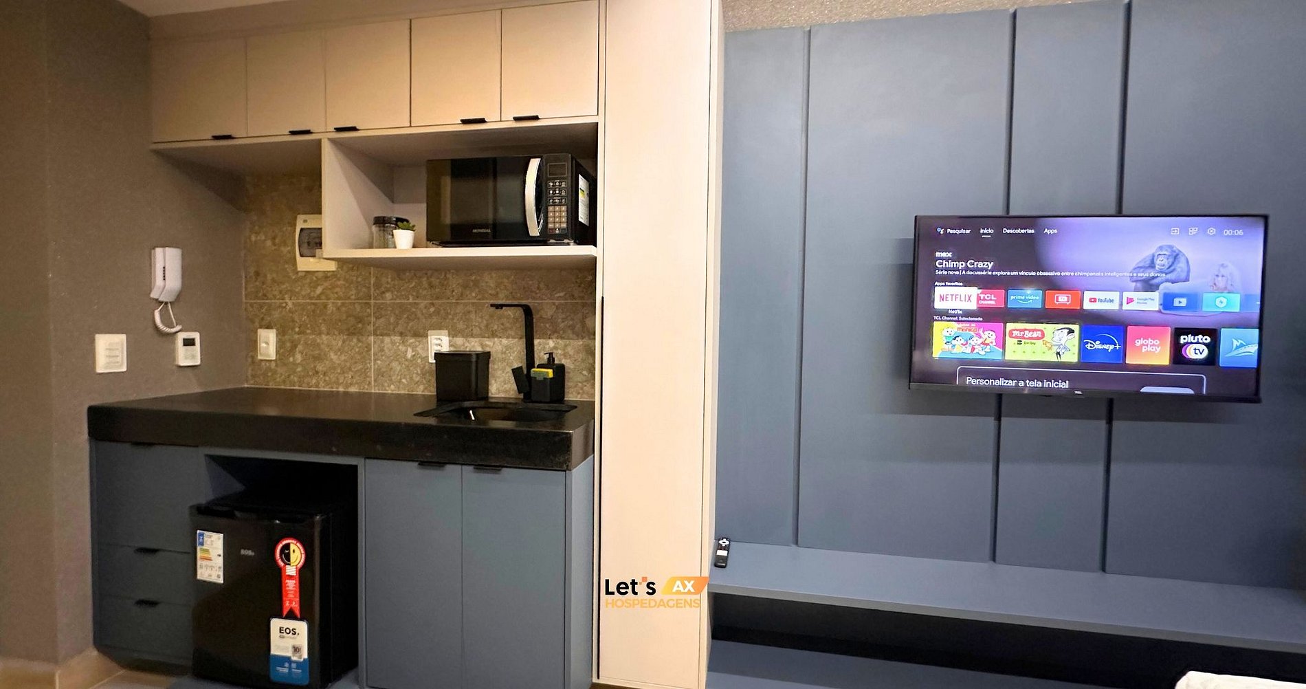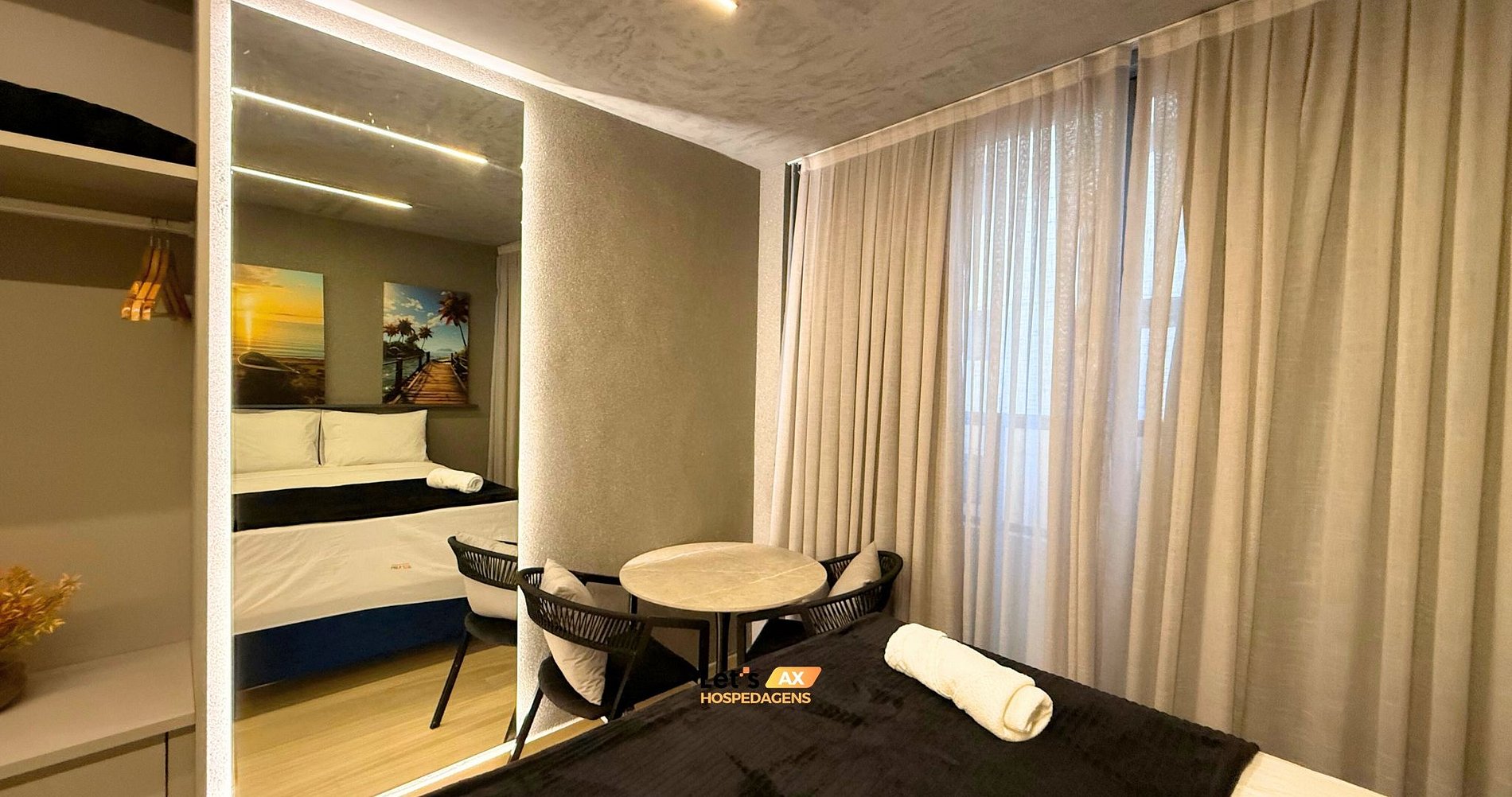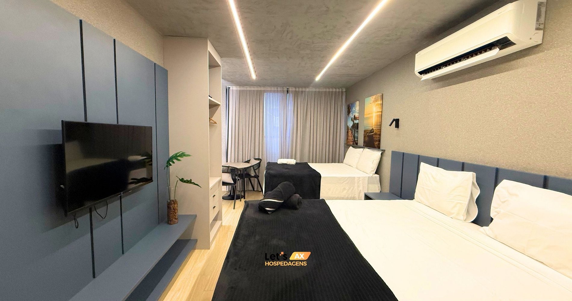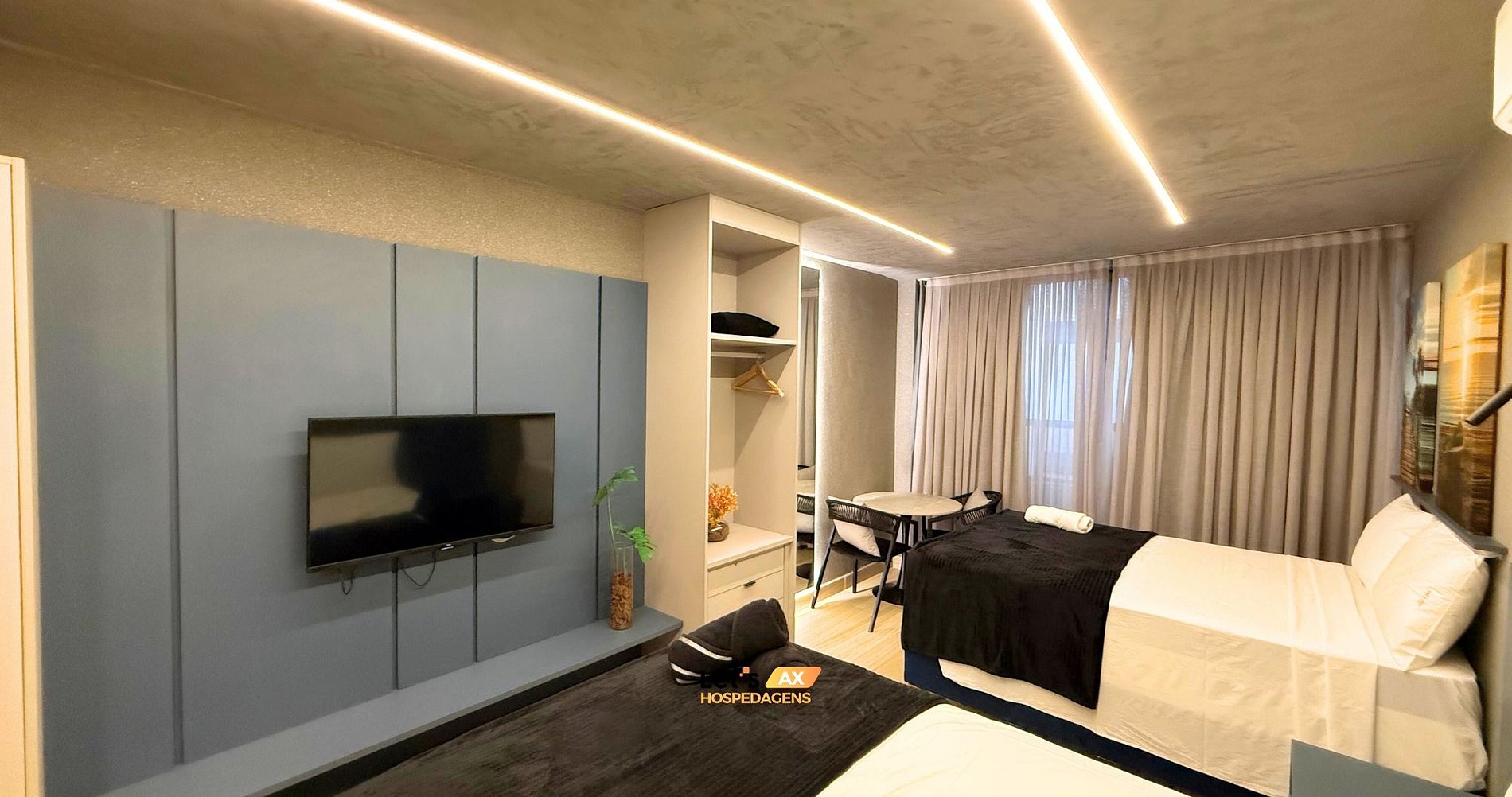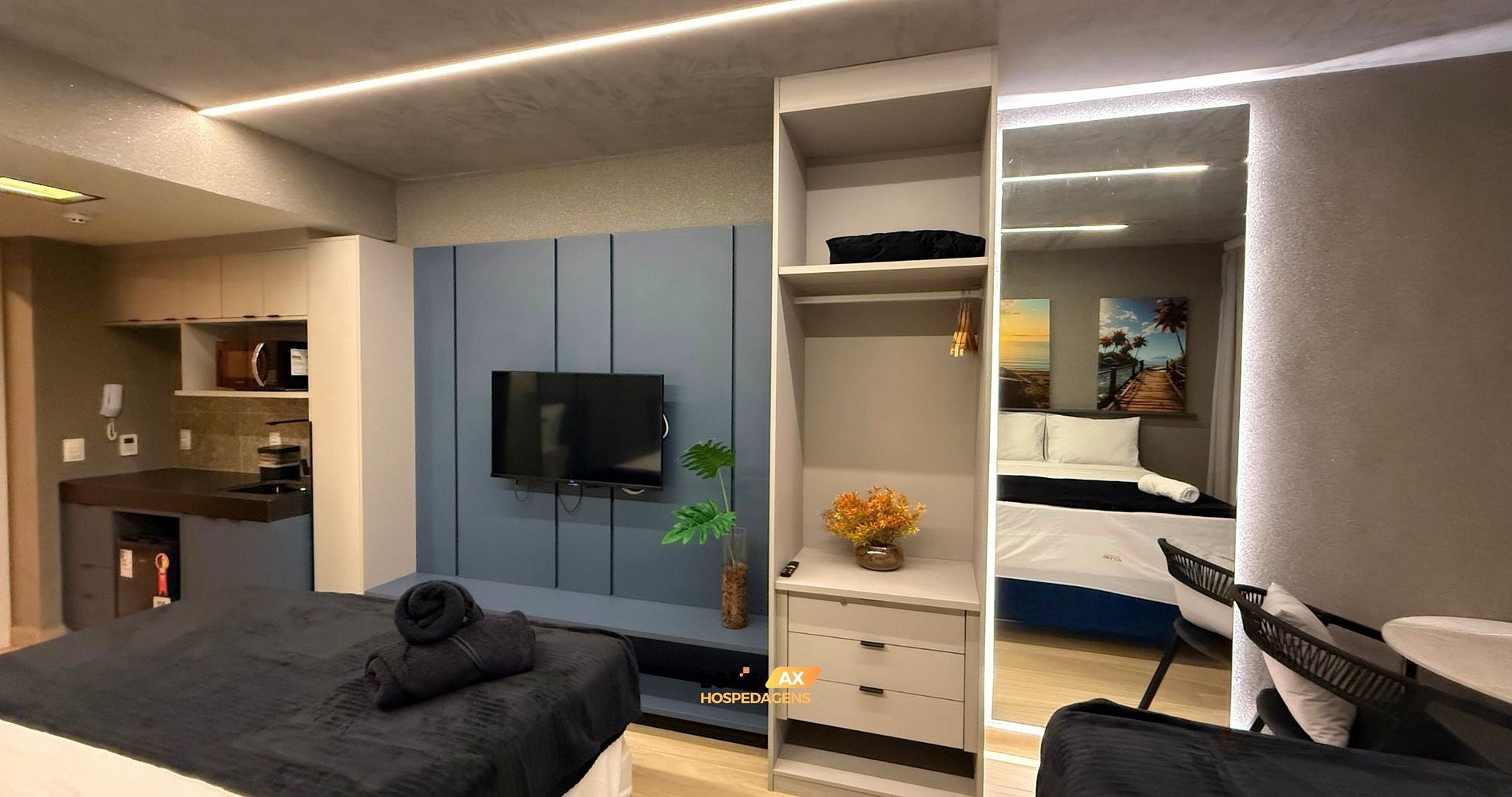 - Este Studio oferece: 02 Cama Queen e decoração sofisticada.
