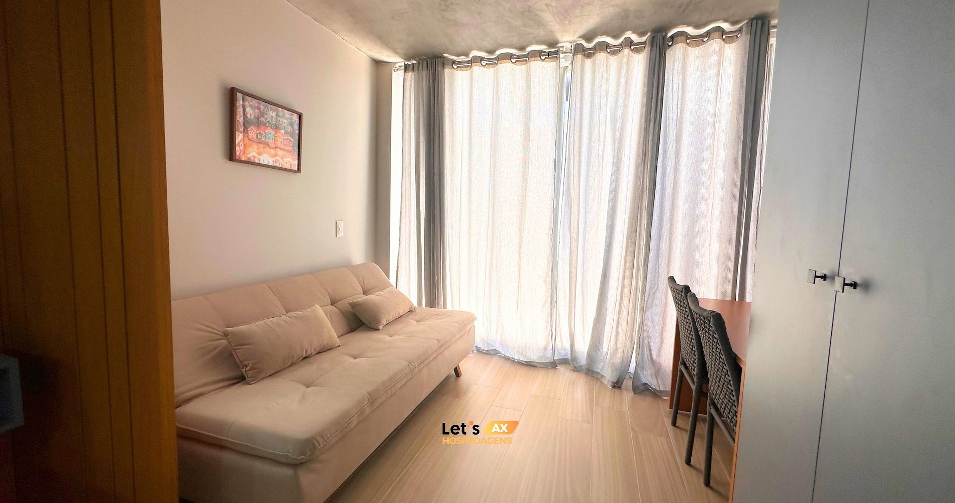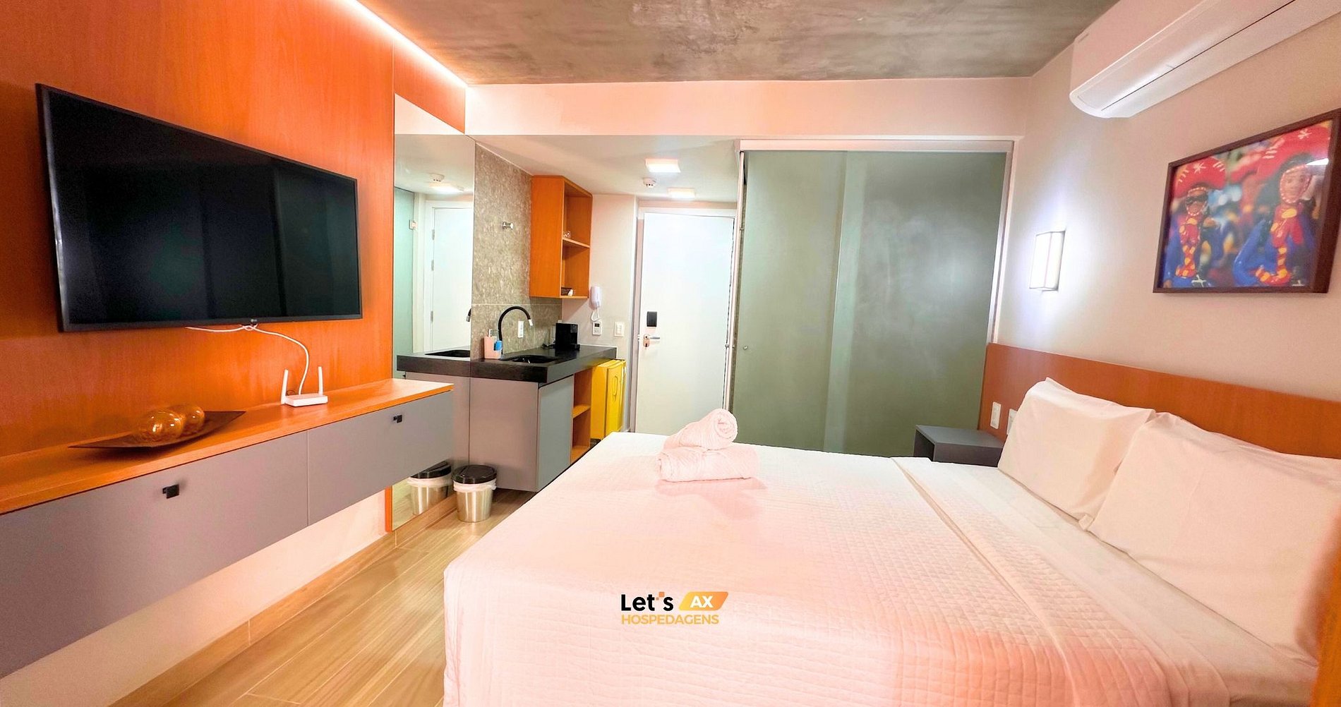 - Studio disponibilizando: Duas camas de casal, lençóis premium, coberta, toalhas e travesseiros.