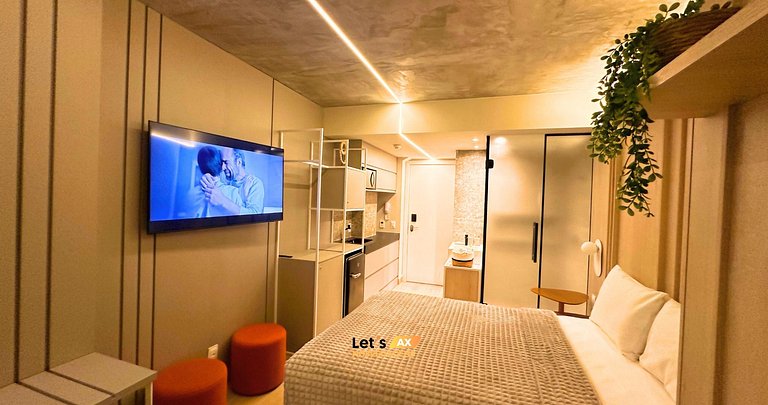 - Este Studio oferece: 02 Cama Casal, decoração sofisticada.