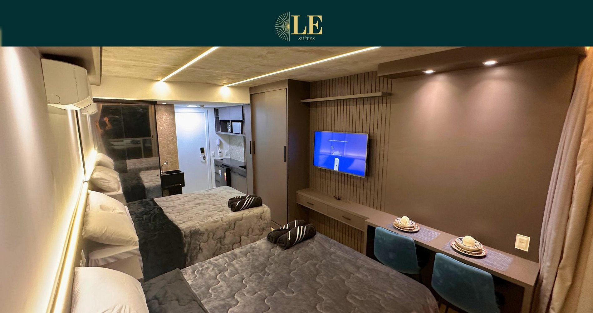- Este Studio oferece: 02 Cama Casal, decoração sofisticada.