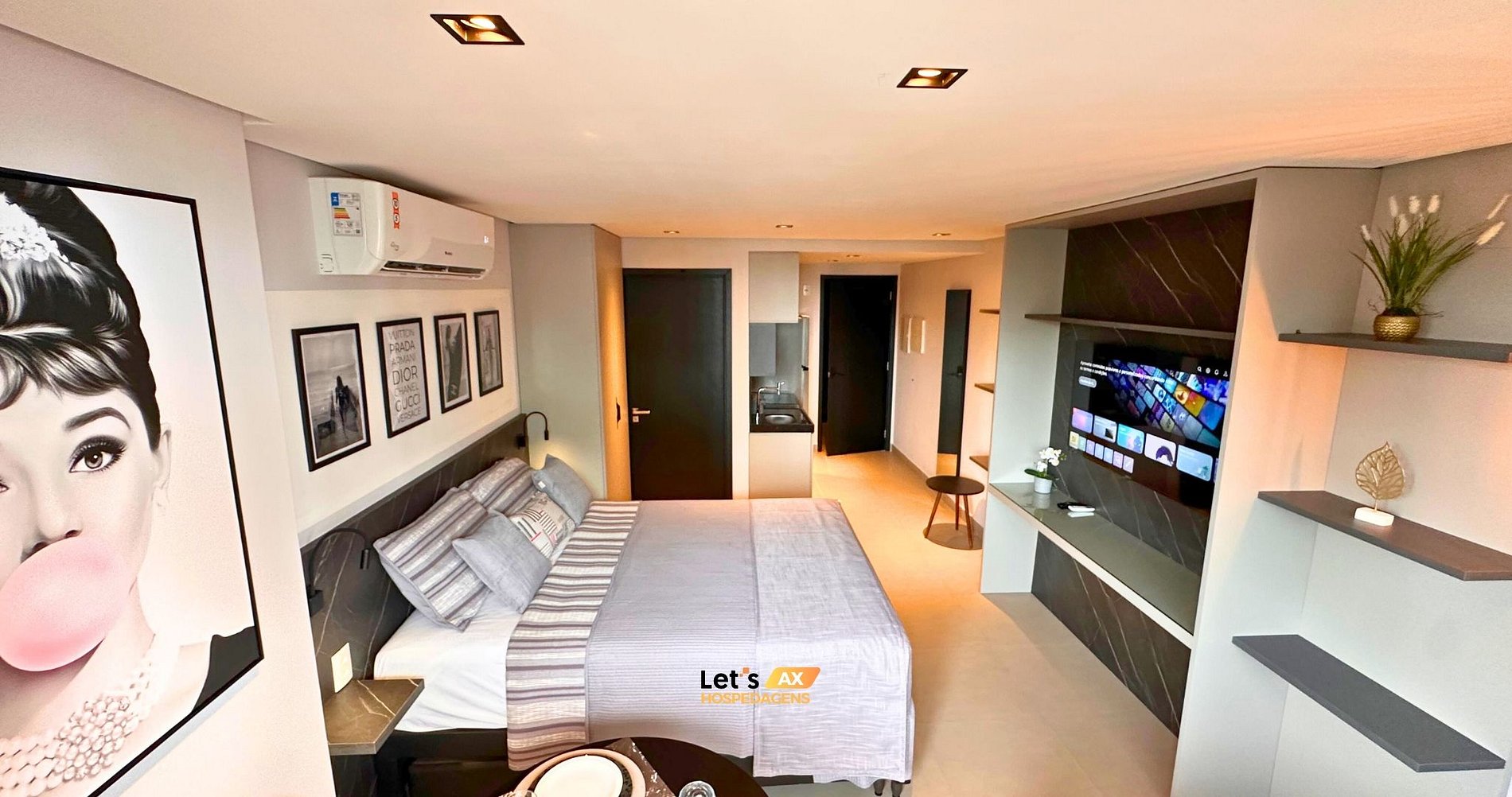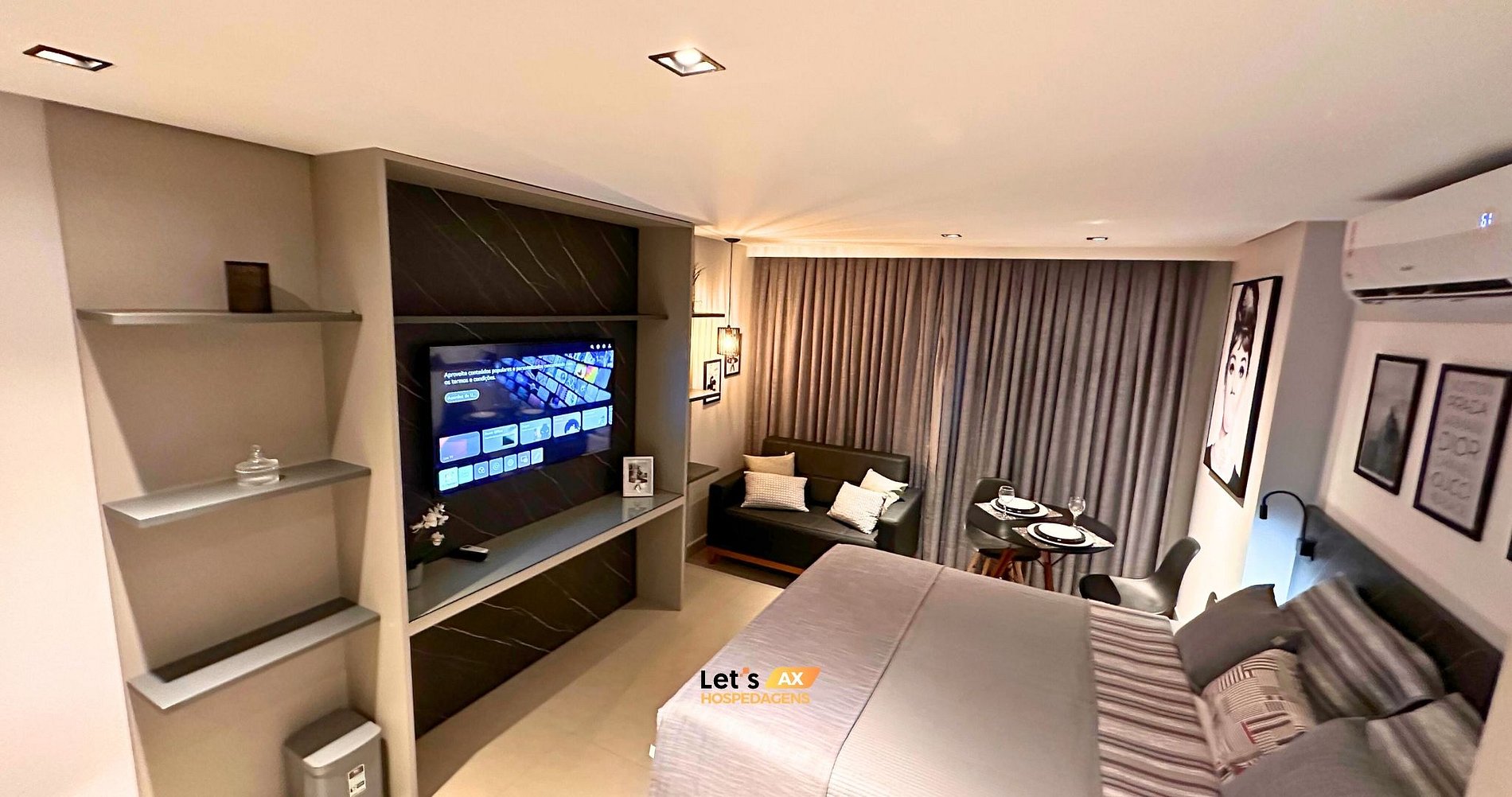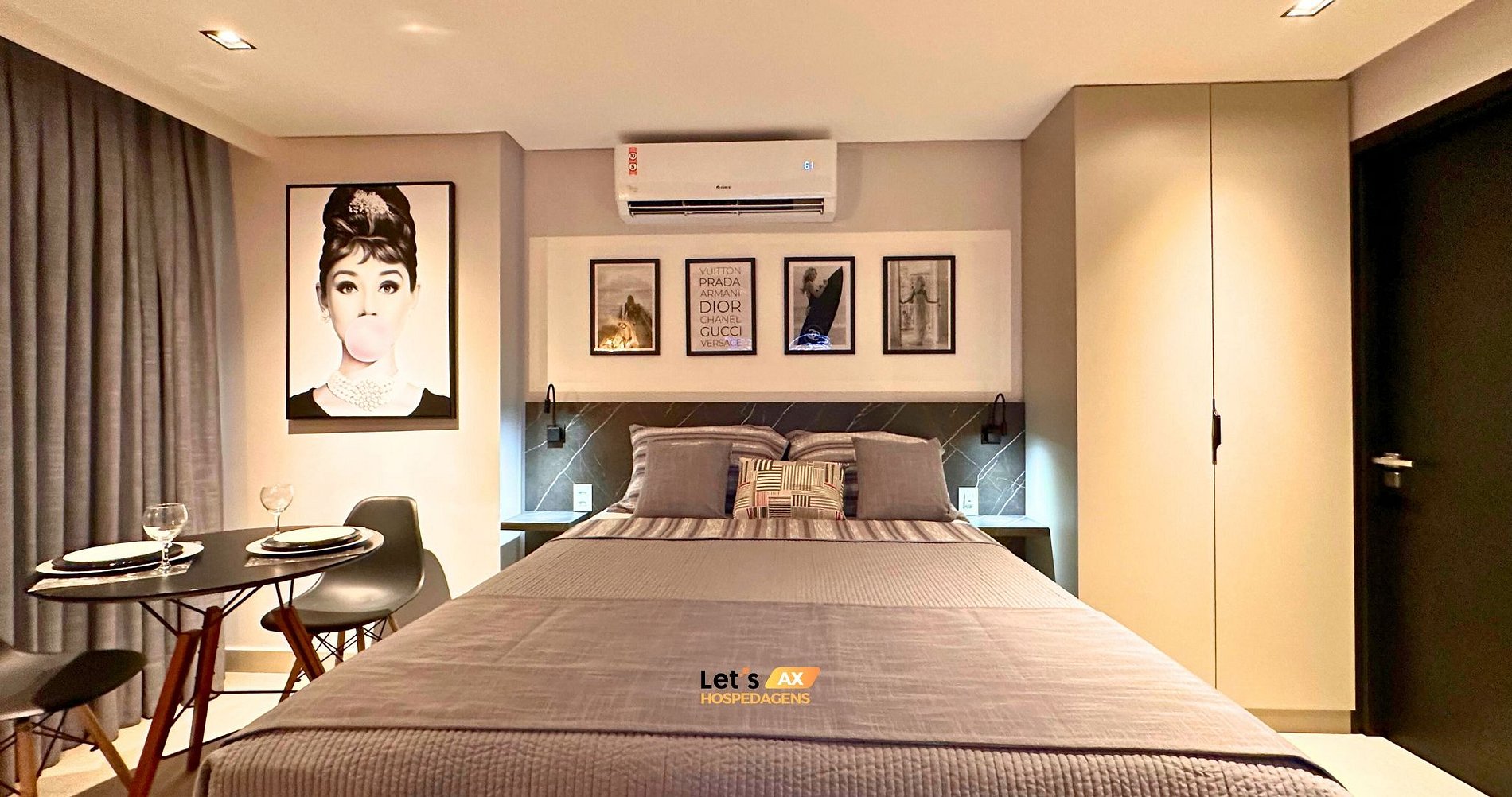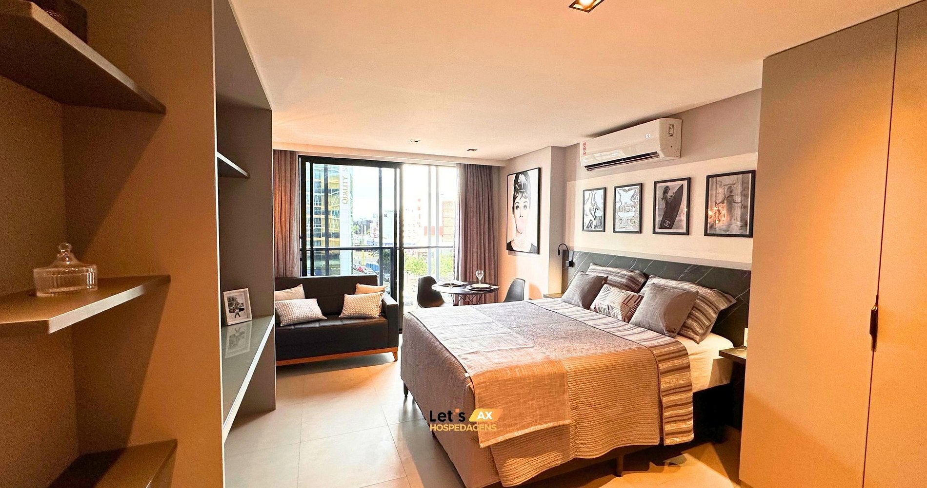 - Studio disponibilizando: Uma cama de casal e duas camas auxiliar solteiro, lençóis premium, coberta, toalhas e travesseiros.