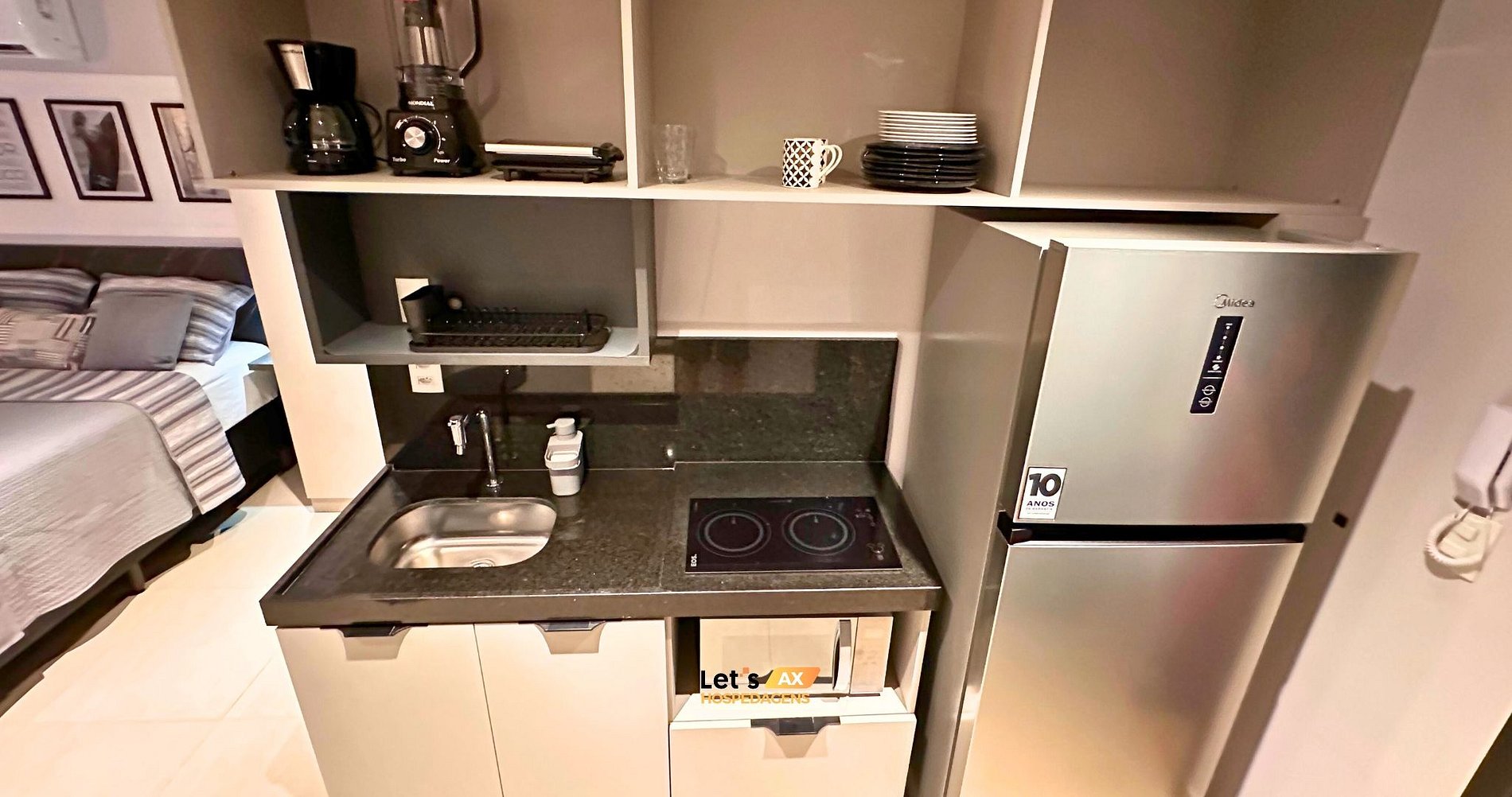 - Espaço projetado disponibilizando: Pratos, copos, talheres, microondas, sanduicheira e cafeteira.