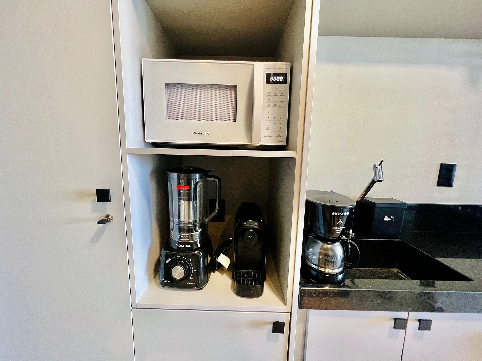 - Espaço projetado disponibilizando: Pratos, copos, talheres, microondas, sanduicheira e cafeteira.