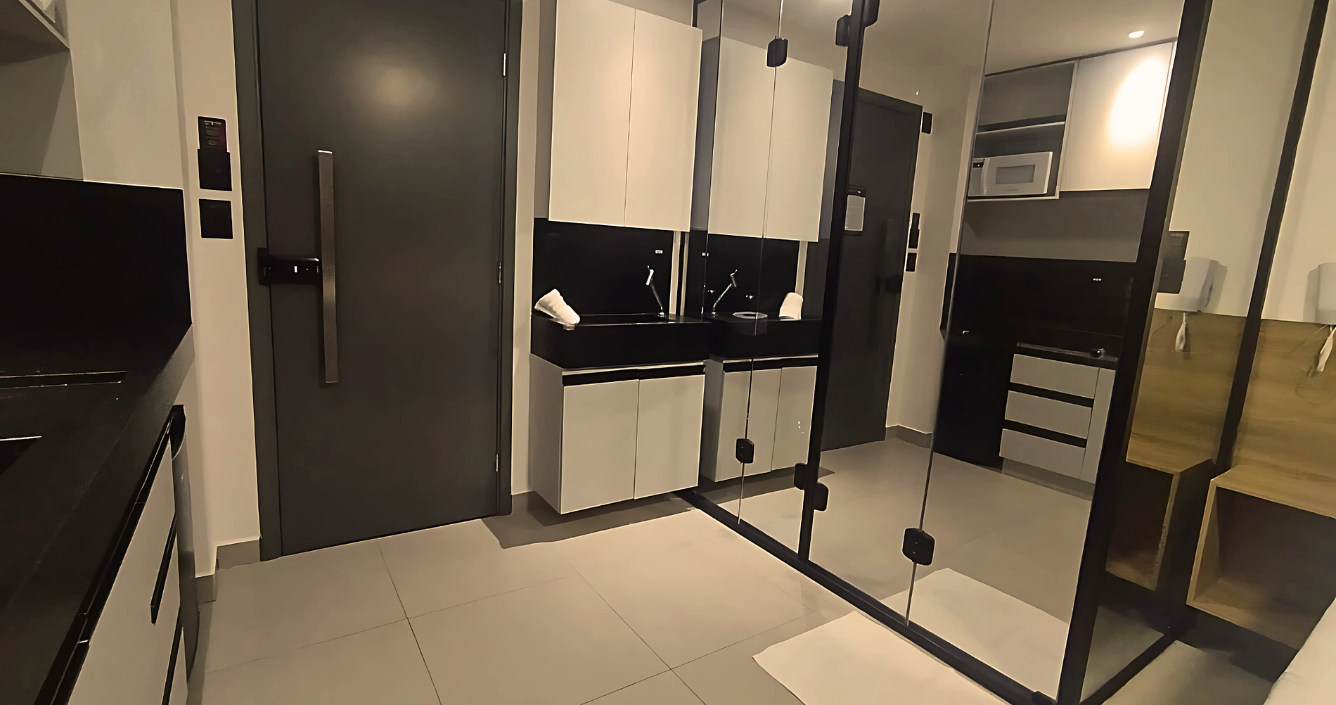 - Espaço projetado disponibilizando: Pratos, copos, talheres, microondas, sanduicheira e cafeteira.