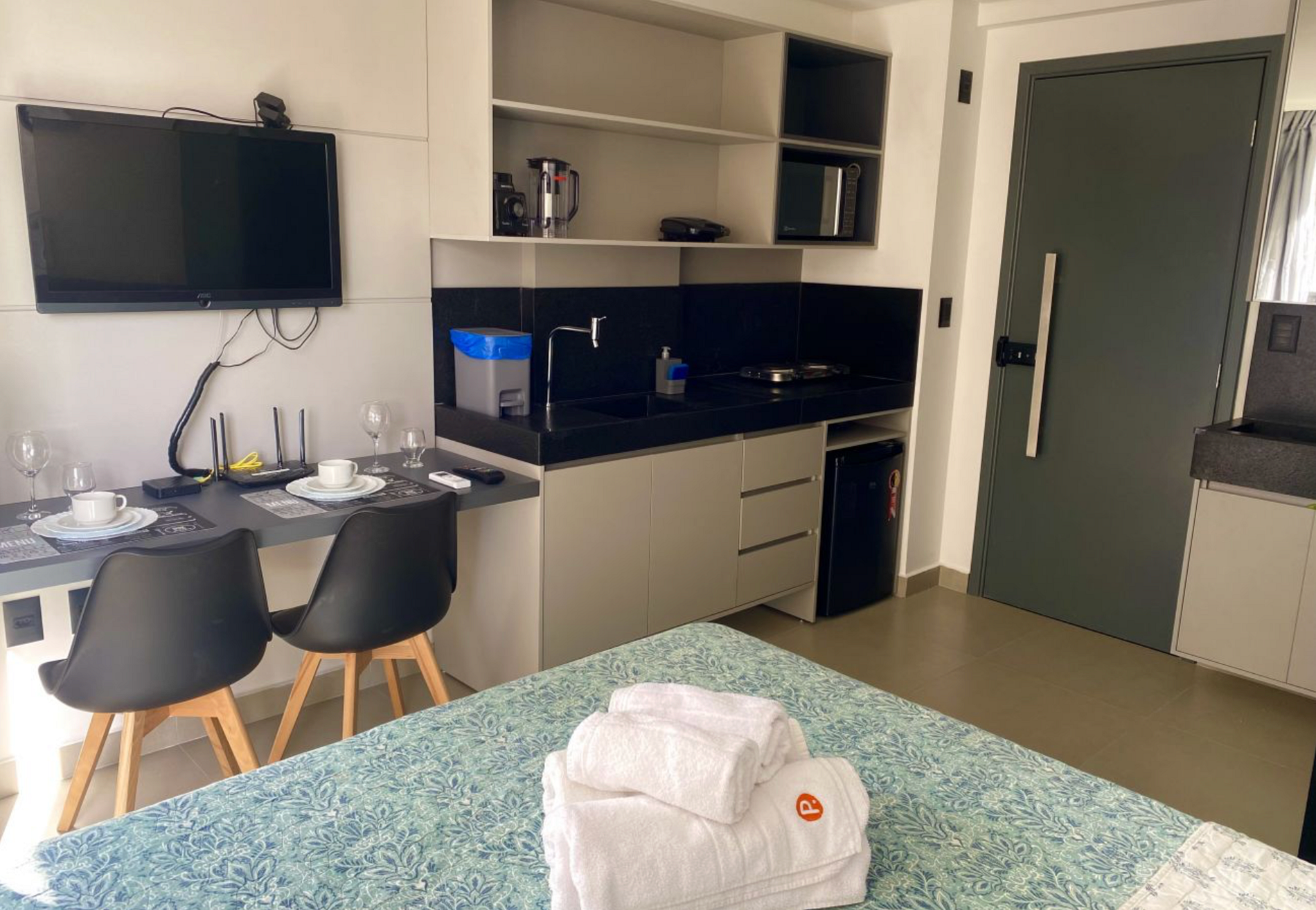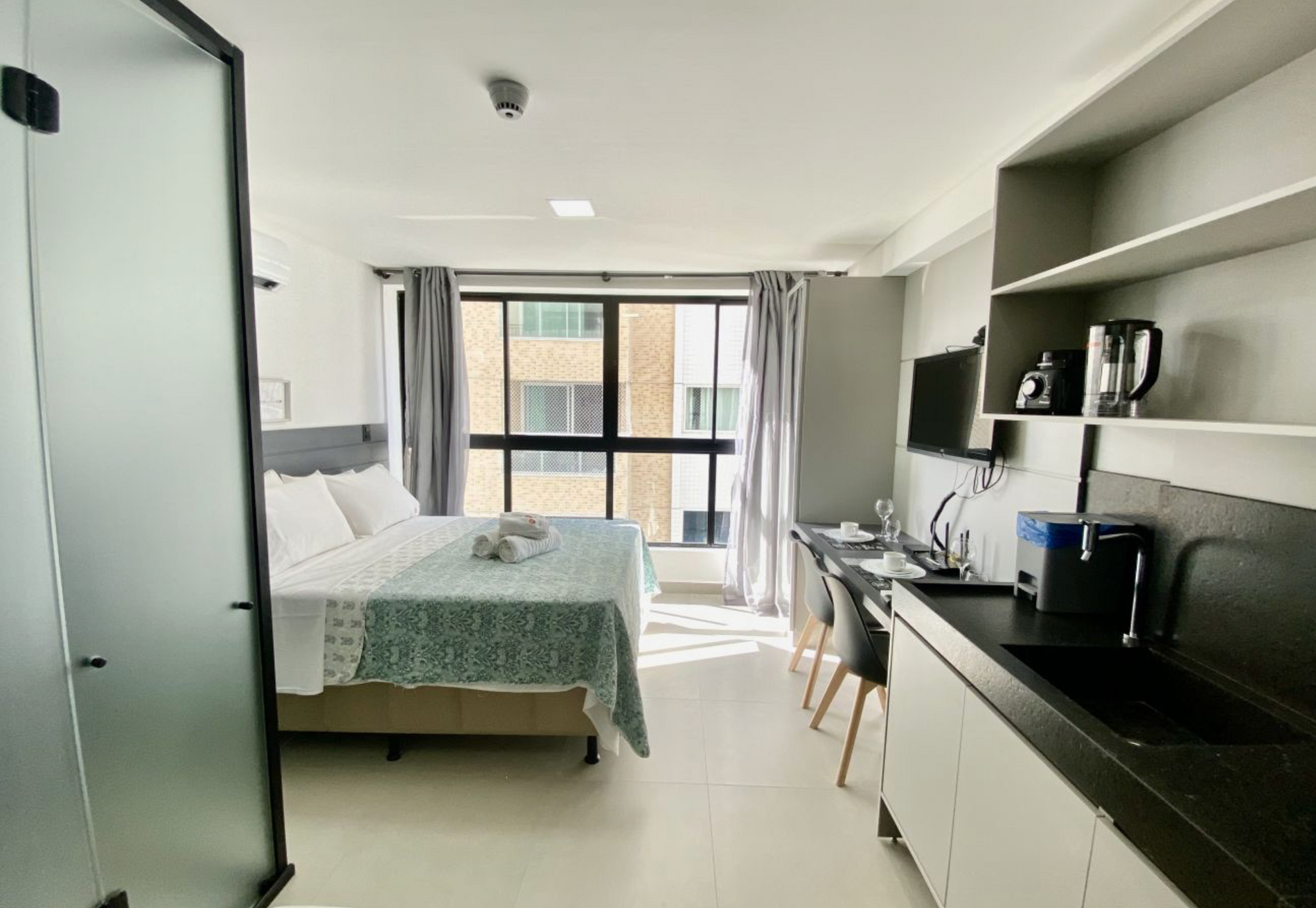 Relaxe neste espaço calmo e cheio de estilo, um apto Studio de 25m equipado e todo decorado. Fica super bem localizado na praia do Bessa e a 2 min a pé da areia da praia. Está equipado com tv smart, wi-fi gratuito, ar condicionado, frigobar, cafeteira, sanduicheira e alguns utensílios de cozinha.