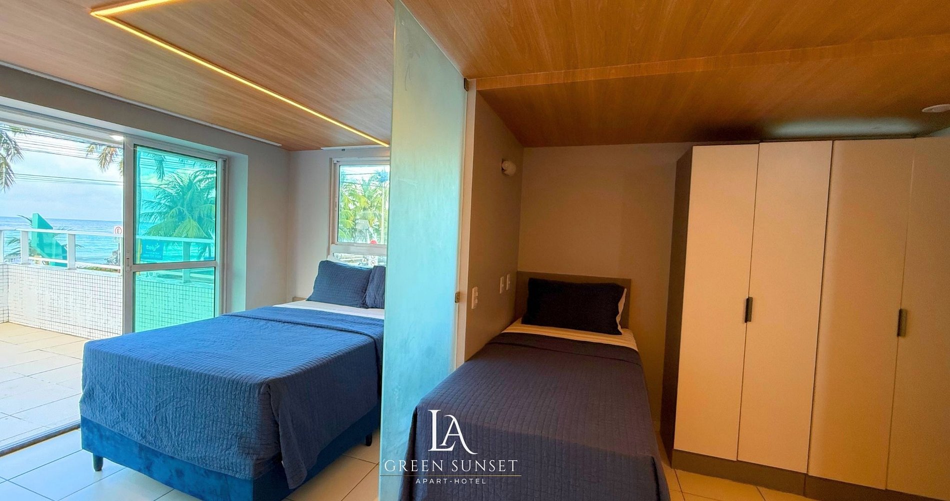 O LA Green Sunset oferece estrutura moderna e funcional, com recepção 24 horas, elevador, segurança e excelente localização em Cabo Branco. Destaque para a piscina na cobertura com vista panorâmica, ideal para relaxar após um dia de passeio. Prédio com estilo hoteleiro, próximo à praia, restaurantes e comércios locais, proporcionando praticidade e conforto aos hóspedes.